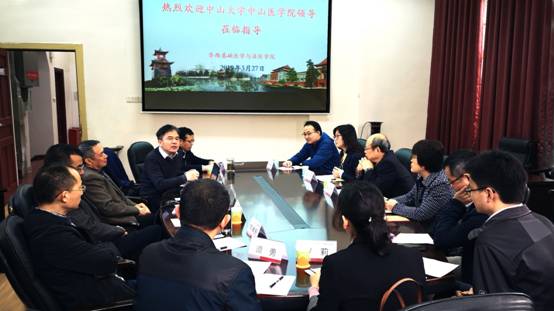3月27日上午8点30分,中山大学中山医学院党委书记吴忠道教授一行八人来beat365官网访问并就党建、师资队伍建设、人才培养等工作进行调研。学院党委书记李昌龙教授,院长黄灿华教授,郭晓伟副书记,副院长方定志教授,教授委员会主席刘肖珩教授及相关老师出席座谈会,座谈会在华西第五教学楼会议室举行。
