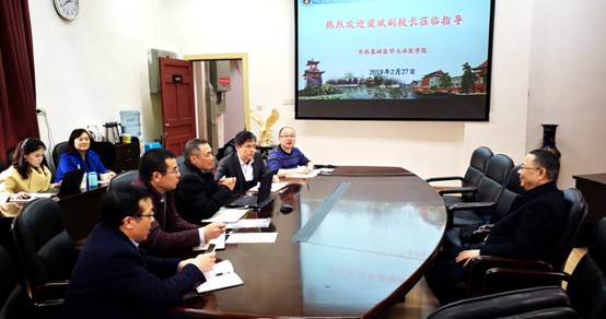 2月27日下午,梁斌副校长来beat365官网进行工作调研,并对学院新学年工作进行指导,调研会在学院会议室举行,学院党委书记李昌龙教授、院长黄灿华教授、党委副书记郭晓伟副教授、副院长方定志教授参加了调研座谈。