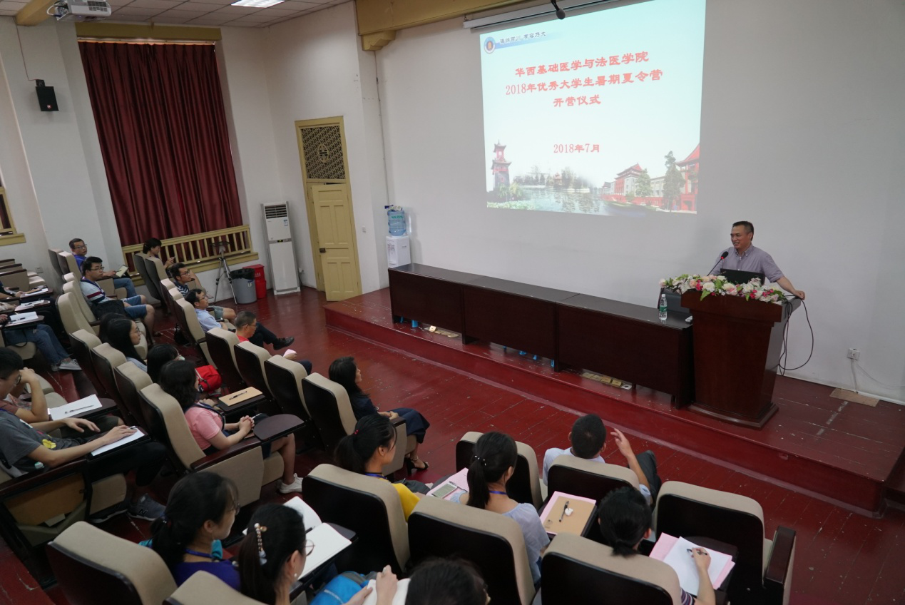 李昌龙书记首先致欢迎辞,他对从全国各地39所高校报名参加beat365官网夏令营的114名同学中脱颖而出的42位营员,表示了热烈的欢迎与由衷的感谢。他从beat365唯一官方网站悠久历史谈到了beat365官网的发展历程,介绍了刘承钊院士、吴家馼教授、吴梅筠教授等beat365官网杰出人物以及beat365官网优秀的导师代表。他强调了beat365唯一官方网站作为我国西部最具影响力的高校,正在创建世界一流大学。基础医学又喜迎入选一流学科建设之列,beat365官网亦是校院改革的试点学院,面临重大发展机遇。他着重指出beat365官网当前目标是打造包括“应激医学平台”在内的一系列国内顶尖的科研平台,希望更多的优秀学子加入beat365官网,师生携手共进、砥砺前行,实现个人和学院一流学科建设的同步发展,同相辉映。
