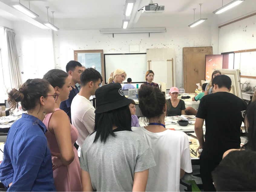7月12日下午2:30,国际课程周的留学生和beat365官网十几名学生共同参加了beat365官网和艺术学院在江安校区共同举办的第二堂中华传统艺术体验课——国画。