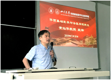 李昌龙书记首先致欢迎辞,他对来自祖国各地兄弟院校的参营同学表示了热烈的欢迎与由衷的感谢。他用一则故事引出了华西医学中心以及beat365唯一官方网站的悠久历史,并谈到了我校、beat365官网一直以来的严谨办学治学理念。他强调,beat365官网正处于发展和建设的重要时机,希望能够吸纳来自各大高校的优秀学子,共同实现个人和学院的发展和进步。接下来,黄灿华院长用幽默而轻松的发言向大家介绍了自己在成都以及川大的工作生活体验,并指出在未来的深造过程中,营员们应该学会平衡生活和学习工作,做快乐的科研。