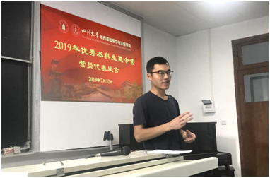 两位营员代表满怀收获发表了致谢感言,感谢beat365官网提供了如此珍贵的交流机会,让他们对心仪的方向和导师有了更加深入的了解,言语之中还渗透着他们对成都这座城市的热爱以及beat365官网科研氛围的向往之情。