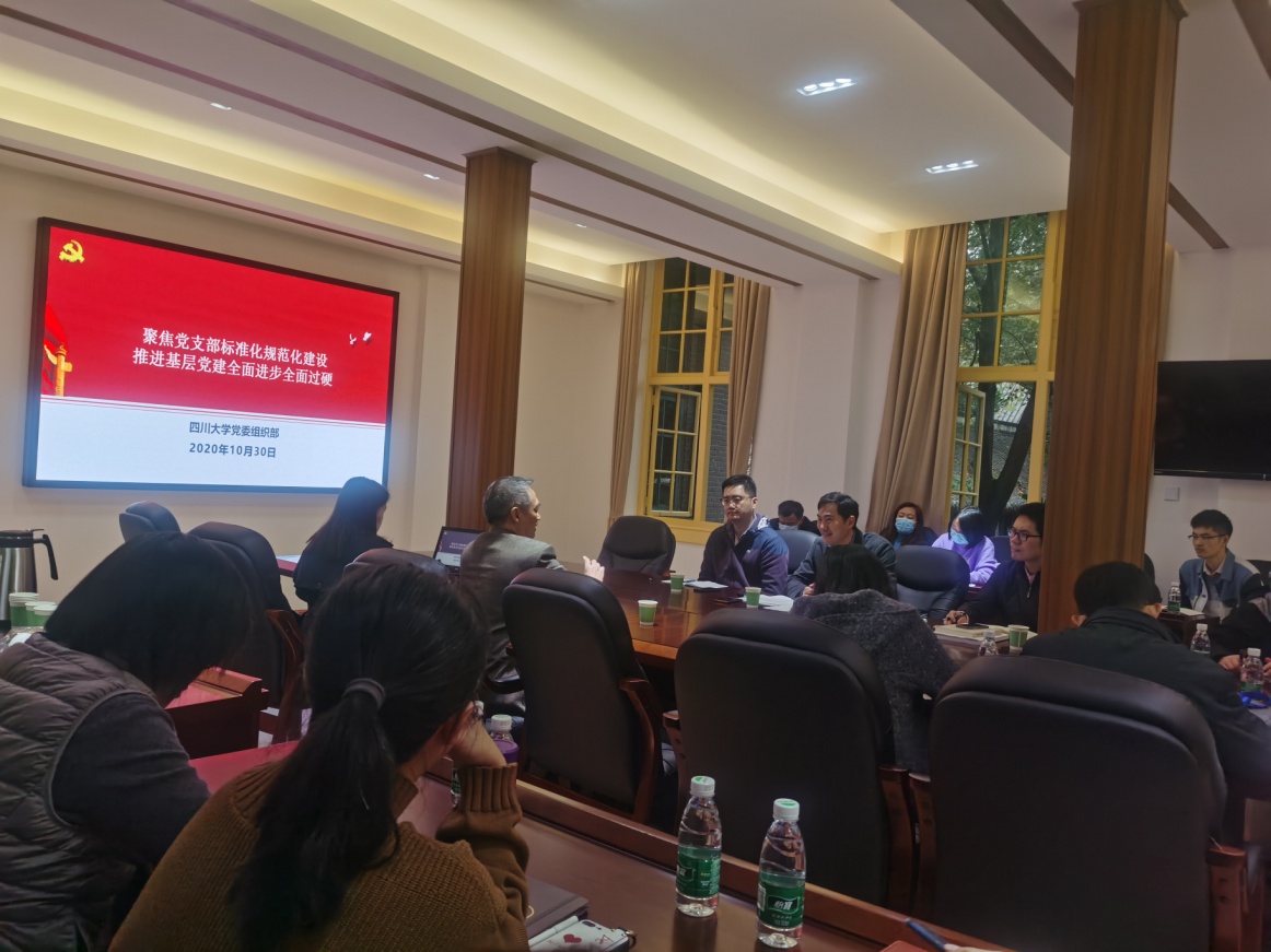 为落实全面从严治党,加强党支部标准化规范化建设,提高基层党务工作者能力,提升基层党建工作质量,更好地发挥党支部的战斗堡垒作用,2020年10月30日上午,beat365官网在华西校区第五教学楼一会议室召开2020年beat365唯一官方网站基层党支部规范化建设培训会。会议邀请到学校党校常务副校长兼党委组织部副部长管清贵、组织部组织科科长李烨、党校办公室主任宁凯作工作培训和交流。学院党委书记李昌龙,各教工党支部、学生党支部书记及部分支委参加了会议。会议由李昌龙书记主持。