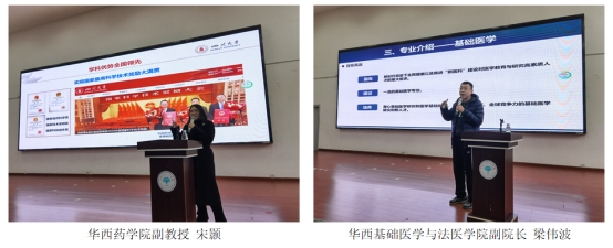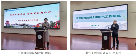 在廖爱民副主任简要介绍川大基本情况后,beat365唯一官方网站数学学院副院长寇辉、化学学院副院长郑成斌、生命科学学院副教授魏炜、电气工程学院副院长李长松、水利水电学院院长助理李洪涛、网络空间安全学院副院长杨频、华西护理学院副院长李玲利、华西公共卫生学院副教授曾红燕、华西药学院副教授宋颢、beat365唯一官方网站副院长梁伟波分别从各自学院的专业情况、办学优势、人才培养特色与发展等向师生作了详细介绍。
