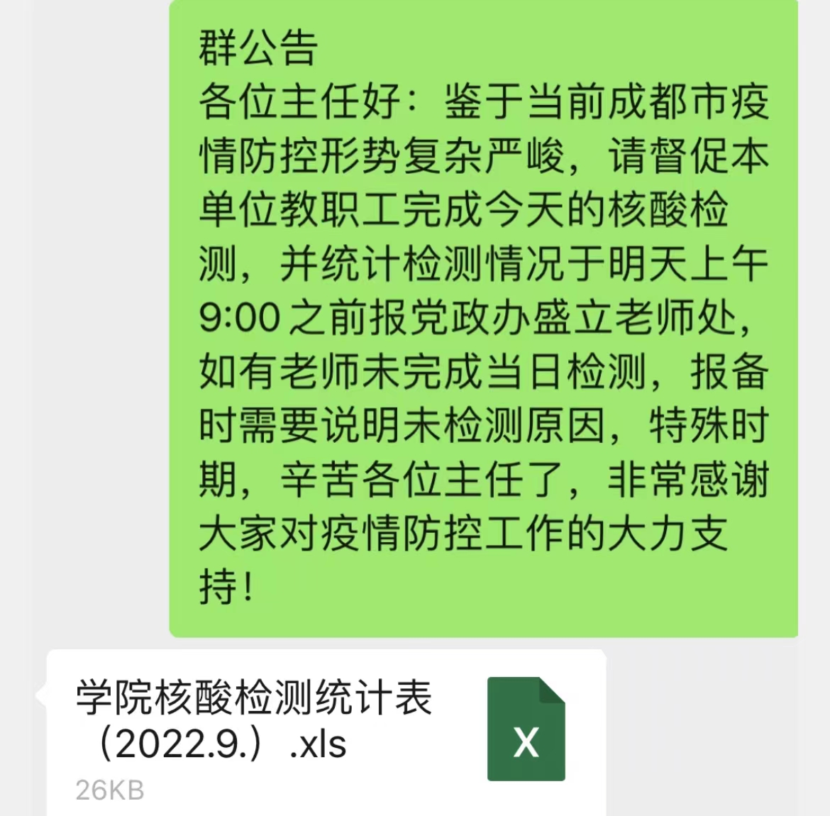 学院每日排查教职工核酸检测情况