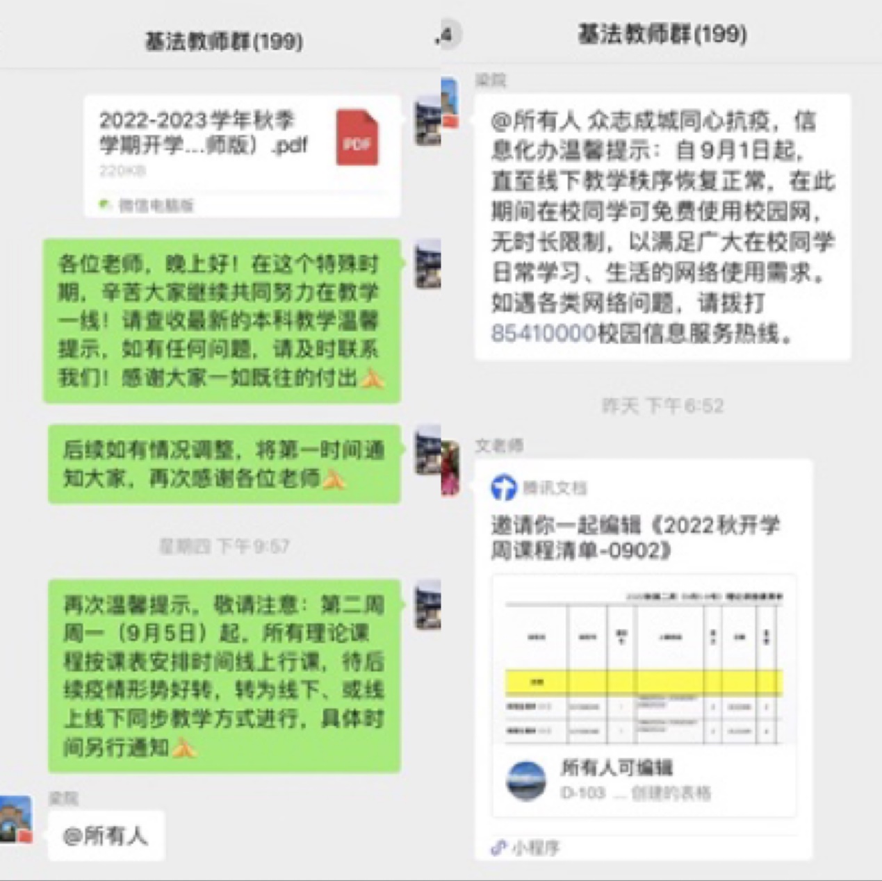 为积极应对疫情防控形势,保障线上教学顺利运行,学院按照学校统一部署,第一时间研究落实关于近期教学运行的重要工作安排。全院一线教师及时调整,建课程QQ群,通知并确保学生全部入群,公布线上授课方式,督促学生提前做好线上学习的各项准备工作。全体教师利用周末居家时间认真调试、准备,发放课件、电子教材及学习资料,为线上上课有困难的学生提供及时帮助。2022-2023学年秋季学期第二周beat365官网150门次课程已全部做好线上授课准备,学院领导干部、院督导及教学管理部门老师提前做好首周(教学周第二周)线上巡教准备,切实保障线上授课质量。