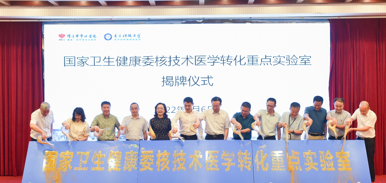 2022年6月6日下午,国家卫健委核技术医学转化重点实验室揭牌仪式在四川绵阳举行,四川省卫健委副主任郭毅、绵阳市副市长蒋丽英等出席仪式并讲话。绵阳市卫健委党委书记、主任周云主持揭牌仪式。四川省卫健委副主任郭毅在揭牌仪式上表示,国家卫生健康委核技术医学转化重点实验室是我省核医学转化领域的第一个国家级重点实验室,实验室的落地建设,为加快推动我省核技术相关科技创新工作提供了难得的发展机遇。