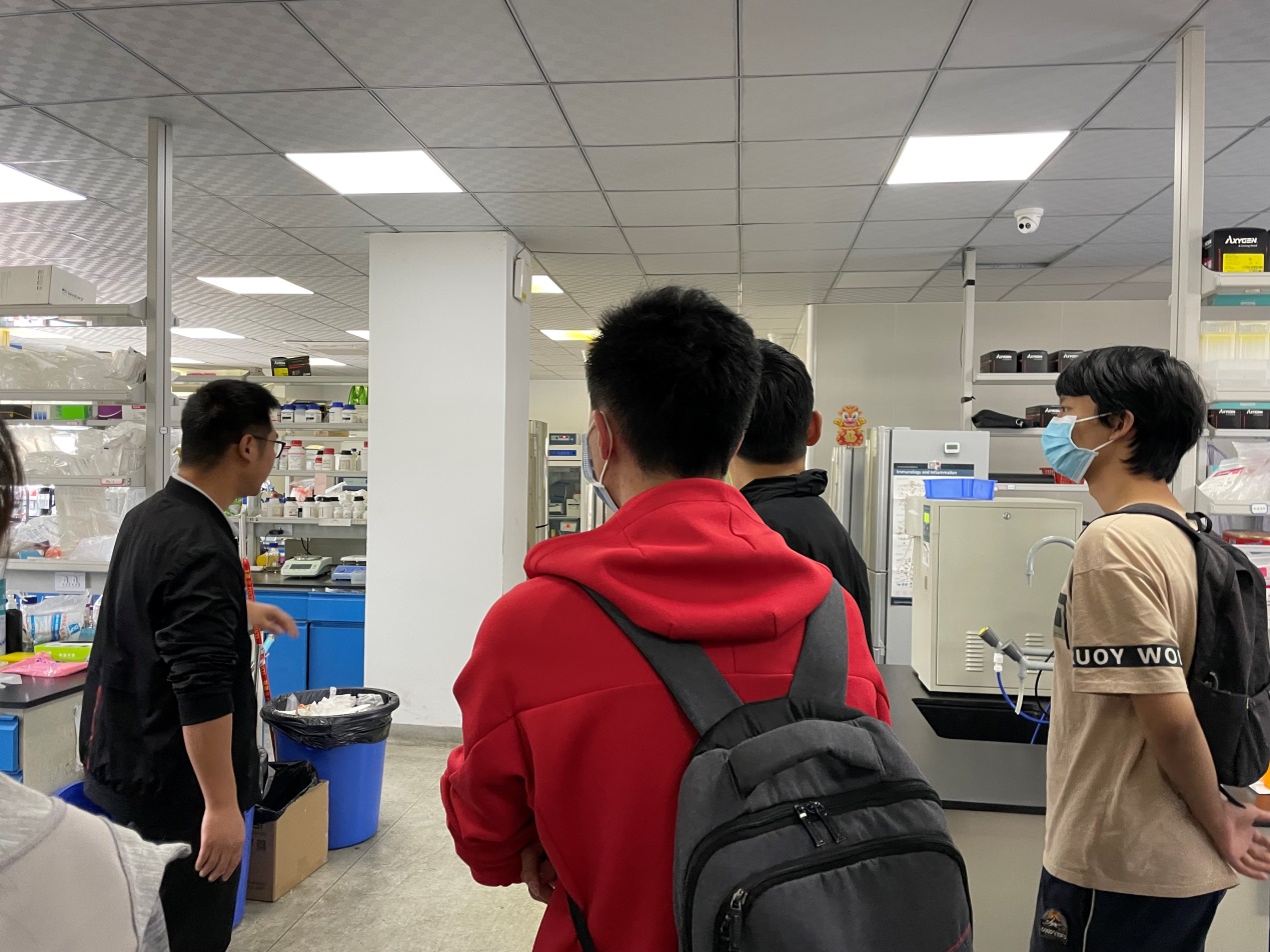 在生物医学工程研究室,研究室老师和研究生学长向同学们讲解了实验室各个区域的功能和实验室的研究方向,介绍了仪器的操作和使用方法。研究生学长以自己的科研经历,鼓励大家珍惜江安时光,好好学习,为今后科研打下坚实基础。