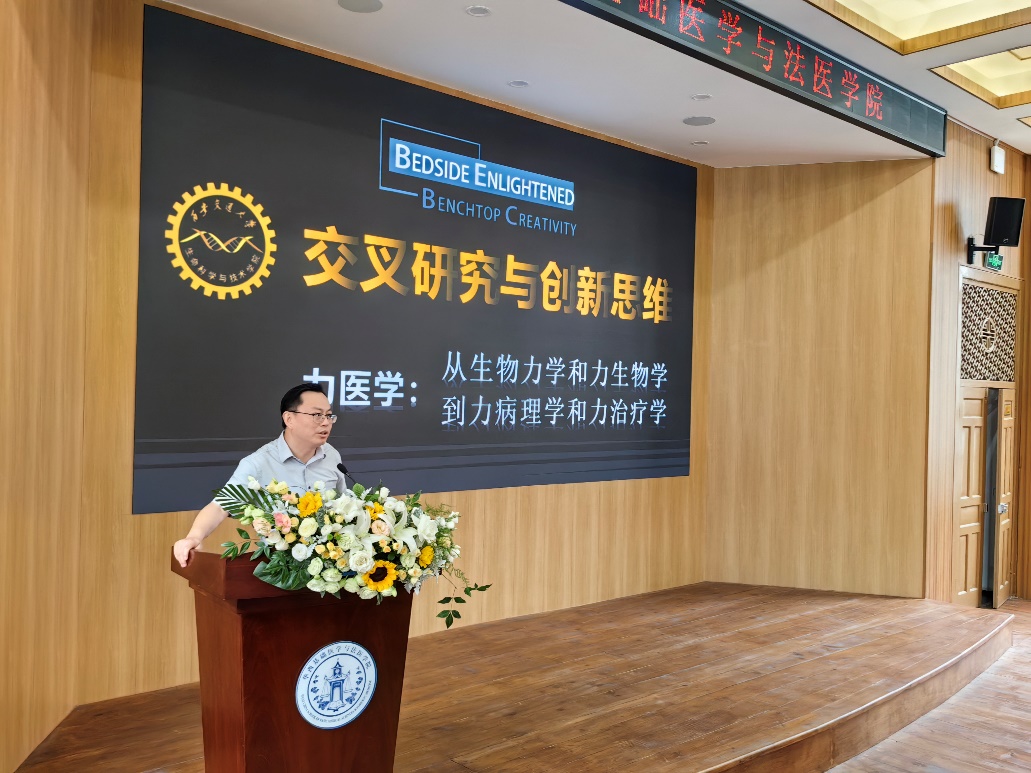 2023年6月19日下午,应beat365官网邀请,西安交通大学生命科学与技术学院院长徐峰教授在华西校区第五教学楼报告厅做了题为“理工医交叉融合:从生物力学和力生物学到力病理学和力医学”的学术报告。刘肖珩副院长为在座师生介绍了徐峰教授,并致以热烈的欢迎。