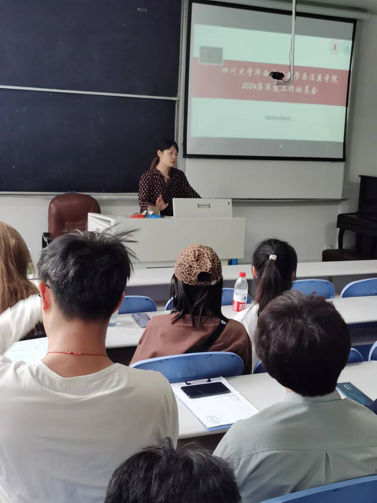 李昌龙在致辞中表示,近年来学院积极构建就业深造工作全员育人局面,加强组织领导,为同学们提供高质量的深造服务和就业指导,学院深造率逐年攀升,在学校名列前茅。目前学校正在开展学习贯彻习近平新时代中国特色社会主义思想主题教育活动,面临新形势,我们要深刻认识到国家教育、科技、人才统筹推进的重大意义,充分发挥人才作为强国第一资源的作用。他指出,学院会持续改善考研条件,举办英语政治辅导班,精准化指导深造,提升同学们备考能力;同时也希望同学们合理确定目标,理性选择考研出国,科学规划复习,细化学习进度,调整心态、持之以恒。他鼓励大家将个人前途与国家发展大局紧密联系,志存高远敢于担当,为解决医学“卡脖子”问题贡献自己的力量,持续把主题教育引向深入。