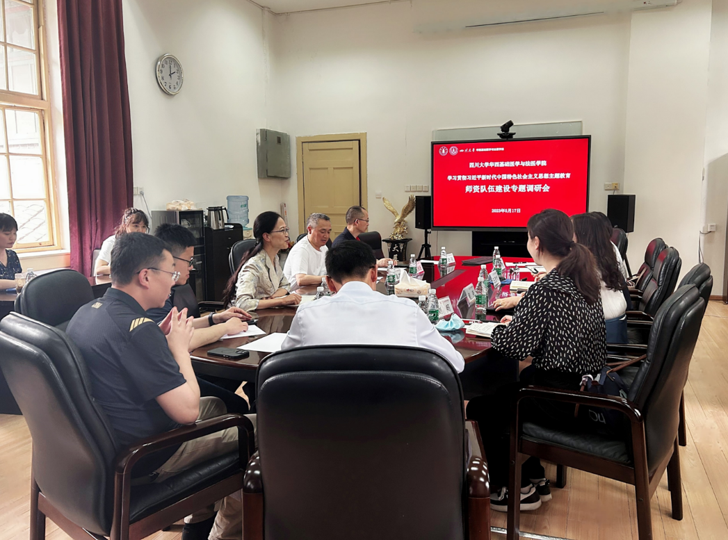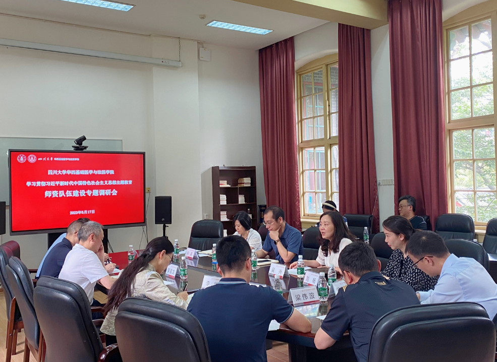 为进一步推进学习贯彻习近平新时代中国特色社会主义思想主题教育走深走实,发现和查找学院在师资队伍建设工作中差距和不足,5月17日下午,学院在华西五教二会议室开展师资队伍建设专题宣讲及调研会,人事处处长吴尧、副处长王茂华、人事处人事科科长刘畅、综合管理科孙英、学院班子成员、教研室主任、教授委员会委员及相关工作人员参会。会议由学院党委书记李华主持。