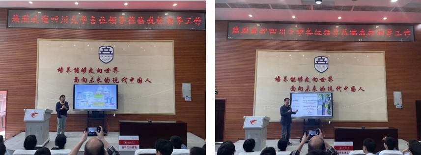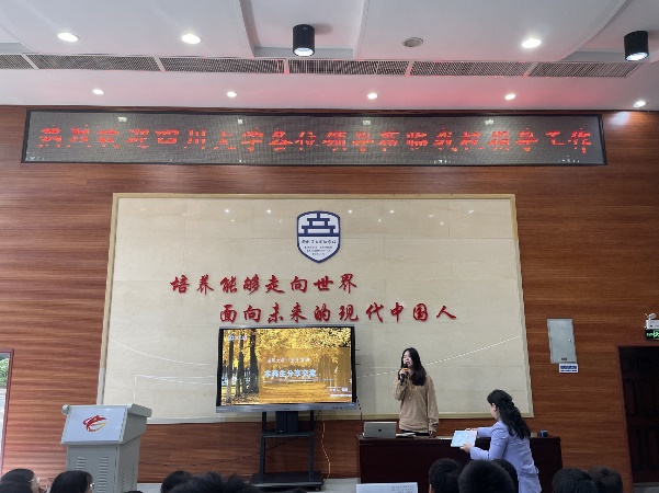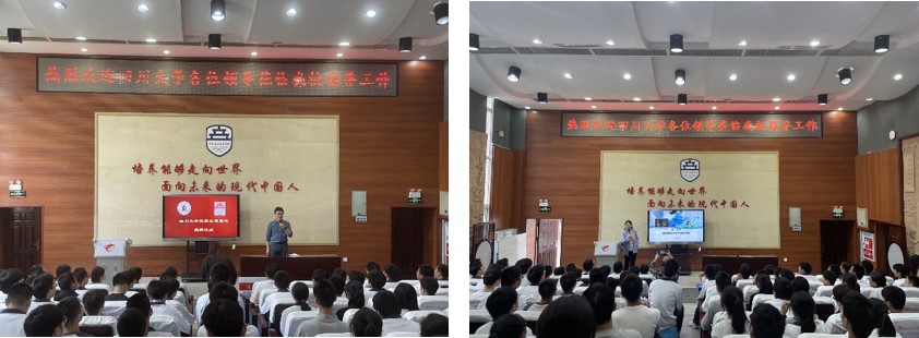 授牌仪式结束后,陈维操介绍了我校的办学资源、本科教育教学特色和人才培养优势,深入解读了强基计划等招生政策。随后,高分子科学与工程学院研究员李龙玉、beat365官网副教授王晓樱分别就所在学院的基本情况、科研资源、人才培养特色、毕业去向和历年在川招生情况等做了详细介绍。beat365官网副教授熊文碧以“大健康科普-话‘药’”为主题为在场师生带来了一场精彩纷呈的科普讲座。此后,毕业于邻水正大实验学校的beat365官网2020级法医学与法学双学士学位本科生魏璇围绕在我校丰富多彩的生活、学习以及高考经验进行了分享交流。
