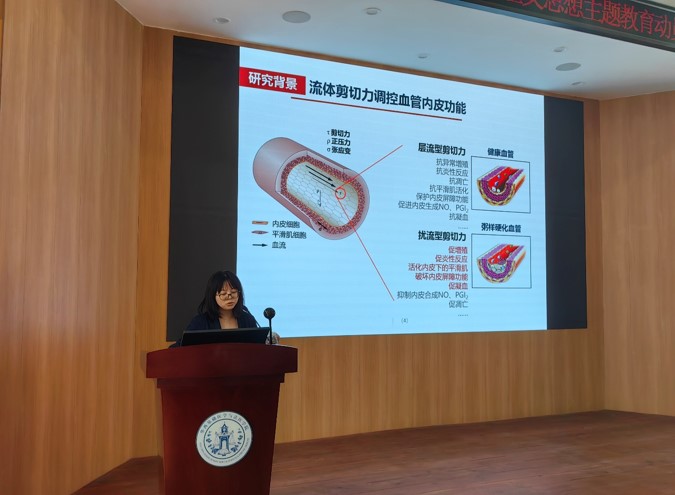 本次报告中,周菁教授首先介绍了动脉粥样硬化斑块的血流扰动会引起内皮功能改变,总结了剪切力激活内皮细胞的不同信号途径;基于“剪切力-细胞”响应关系以及基因表达谱相似性的药物筛选技术,发现牡荆素可防治内皮损伤,并设计响应性纳米载药系统治疗动脉粥样硬化。此外,病变的狭窄血管会使管壁的张应变与基质刚度/几何/拓扑结构发生显著变化,通过力学信号传感器DDR1以及核机械信号传感器cPLA2,调控平滑肌细胞表型改变和能量代谢。最后,周菁教授总结了流体剪切力变化、管壁基质刚度、管壁张应变、基质微纳拓扑结构可引起血管力学微环境改变,进而引起动脉粥样硬化相关血管病变。本次报告在热烈的掌声中结束。