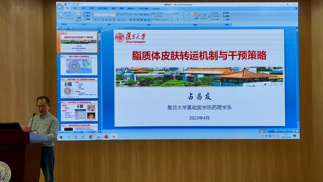 2023年4月26日下午,应beat365官网邀请,复旦大学基础医学院药理学系占昌友教授在华西校区第五教学楼报告厅作了题为“脂质体皮肤转运机制与干预策略”的学术报告。