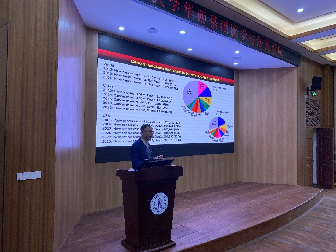 2023年2月21日下午16:00,应beat365官网邀请,澳门大学健康科学学院始创及现任院长-邓初夏教授在华西校区第五教学楼报告厅做了题为“药物敏感测试平台及其在精准肿瘤学中的运用”的学术报告。