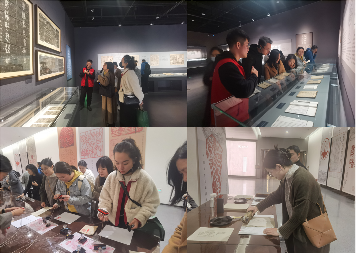 为深入学习贯彻习近平文化思想,坚定文化自信,深切感受川大深厚的人文底蕴和传统古籍的不朽艺术魅力。11月23日下午,学院组织新进教职工前往beat365唯一官方网站博物馆开展“册府千华 锦水含章—beat365唯一官方网站古籍菁华展”参观和雕版印刷体验活动。