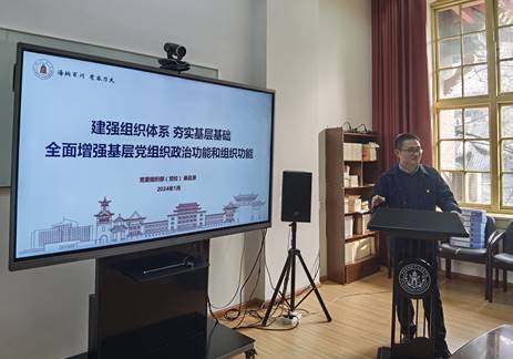 随后,学校党委组织部组织科科长桑启源以《建强组织体系 夯实基层基础,全面增强基层党组织政治功能和组织功能》为题做专题培训,详细介绍“三个一流”建设提出的背景和目标任务,重点阐述基层党组织如何通过增强政治引领力、组织凝聚力、服务师生力、保障落实力,从而充分发挥其战斗堡垒作用的一系列举措。