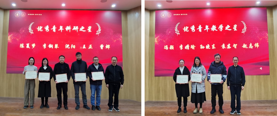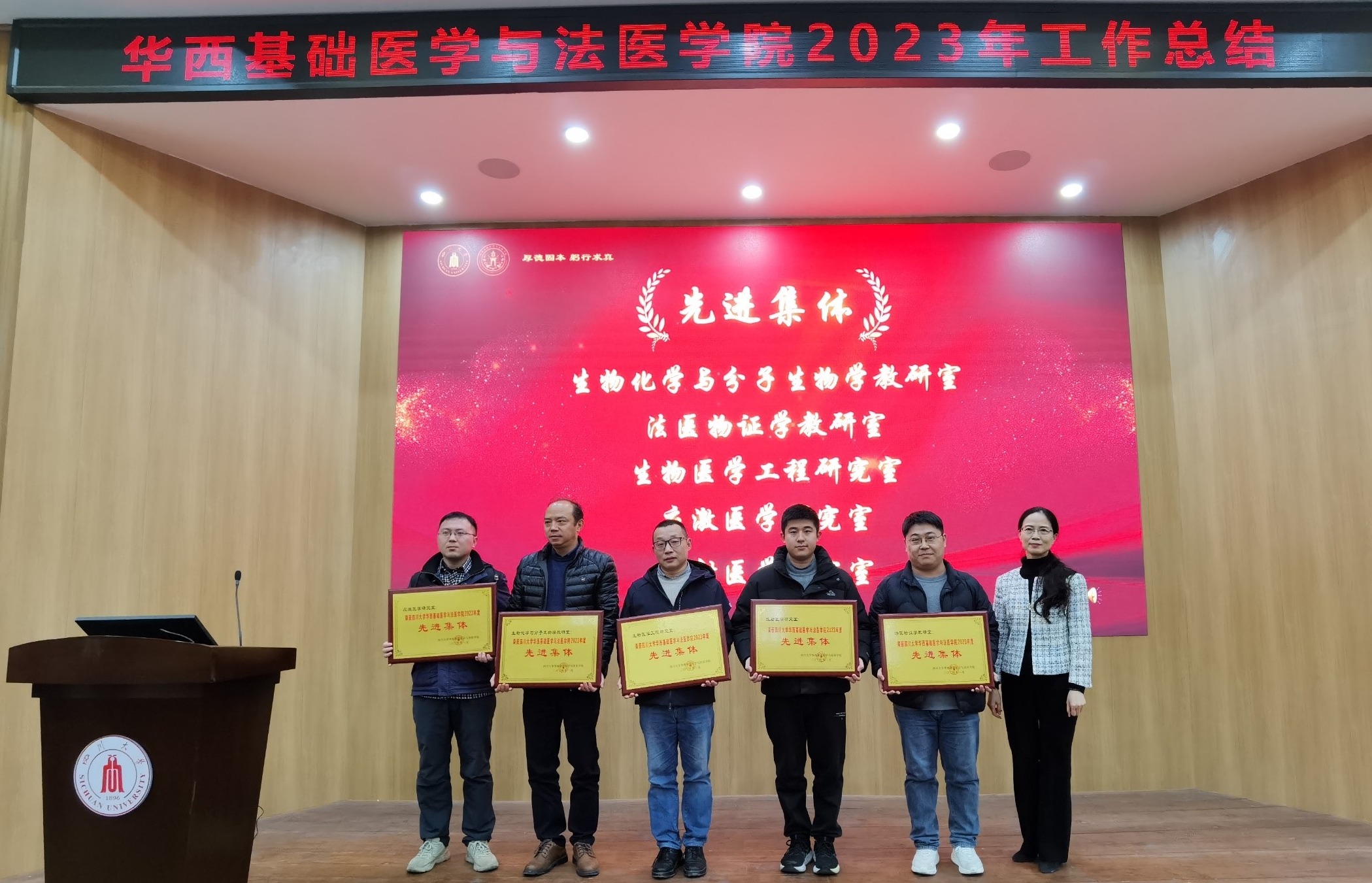 为弘扬争优创先精神,会上表彰了教职工优秀代表,学院根据2023年度工作考核结果,表彰了生物化学与分子生物学教研室、法医物证学教研室、生物医学工程研究室、应激医学研究室、放射医学研究室五个先进集体,谌霞灿、邓曌曦、何贞岑、李浇、廖林川、宋凤、王魁、杨文星、张淑鑫、周黎明十位先进个人,陈夏梦、李钢琴、沈阳、王正、曾烨五位优秀青年科研之星,冯颖、李婧瑜、孙晓东、袁东智、赵志伟五位优秀青年教学之星,陈晓刚、彭旭、张霁、周琳琳、朱磊五位公共事务先进个人,董立华、刘艳、青思含三位优秀工会工作者,陈镜宇、姜楠、周雪、叶懿、岳晓晶五位优秀工会会员,学院领导为获奖集体、个人颁发荣誉证书,全院教职工以热烈的掌声向获奖者表示衷心的祝贺。