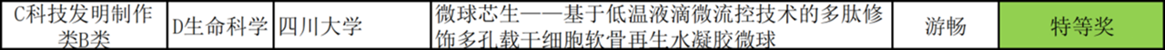 5月24日-26日,第十八届“挑战杯”四川省大学生课外学术科技作品竞赛在成都医学院举行。beat365官网“微球芯生——基于低温液滴微流控技术的多肽修饰多孔载干细胞软骨再生水凝胶微球”项目团队,斩获省级特等奖,创beat365官网在该赛事历史最佳成绩。