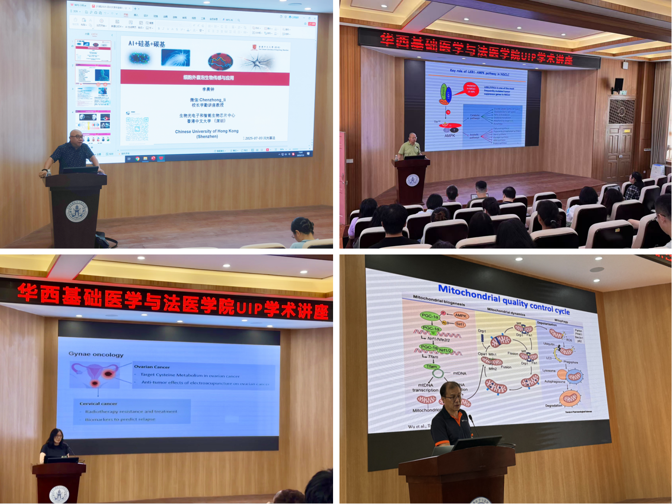 国际课程周期间同步举办的4 场学术讲座,是展现领域前沿成果的重要窗口。6月30日,沈汉明教授以《聚焦 PINK1:葡萄糖代谢与线粒体自噬分子机制的关联》为题,深入解析 PINK1 在肿瘤发生发展中的作用机制,分享了团队在该领域的突破性发现。7月1日,邓力文副教授和刘益成副教授分别围绕《妇科肿瘤的治疗耐药性及其应对策略》和《DAP3通过Miro1和钙信号驱动细胞凋亡》进行学术报告。邓力文副教授从microRNA视角揭示了卵巢癌复发转移的生物标志物识别机制,并介绍了基于靶点优化化疗应对策略的研究进展。刘益成副教授阐述了粒体核糖体蛋白DAP3驱动细胞凋亡的分子机制,为细胞死亡可塑性提供了新证据。7月3日,李晨钟教授作《细胞外囊泡生物传感与应用》主题报告,展示外泌体检测在癌症、神经系统疾病等重大疾病诊断和治疗中的广泛应用。