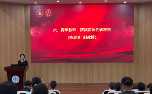 教坛萌新锐,研课夺殊荣。学院邀请陈夏梦老师作为青年教师、获奖教师代表进行分享,她表示,在教学科研工作中,深刻感受到了学生的信任、前辈的期望,将不负信任与期望,为教学科研工作作出更大贡献。