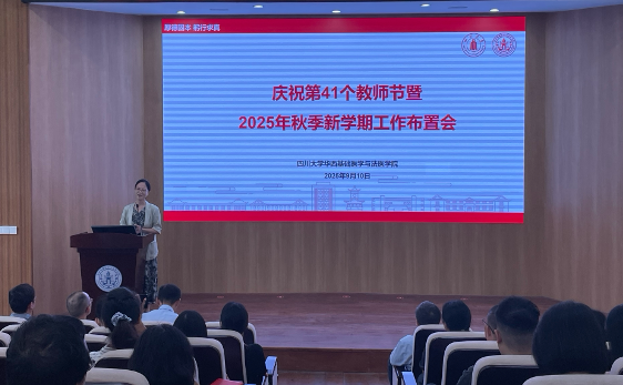 9月10日下午,学院在华西校区第五教学楼报告厅召开庆祝第41个教师节表彰大会暨新学期工作布置会,学院党政领导班子、全体教职工参加会议。会议由学院党委副书记、纪委书记罗海玻主持。