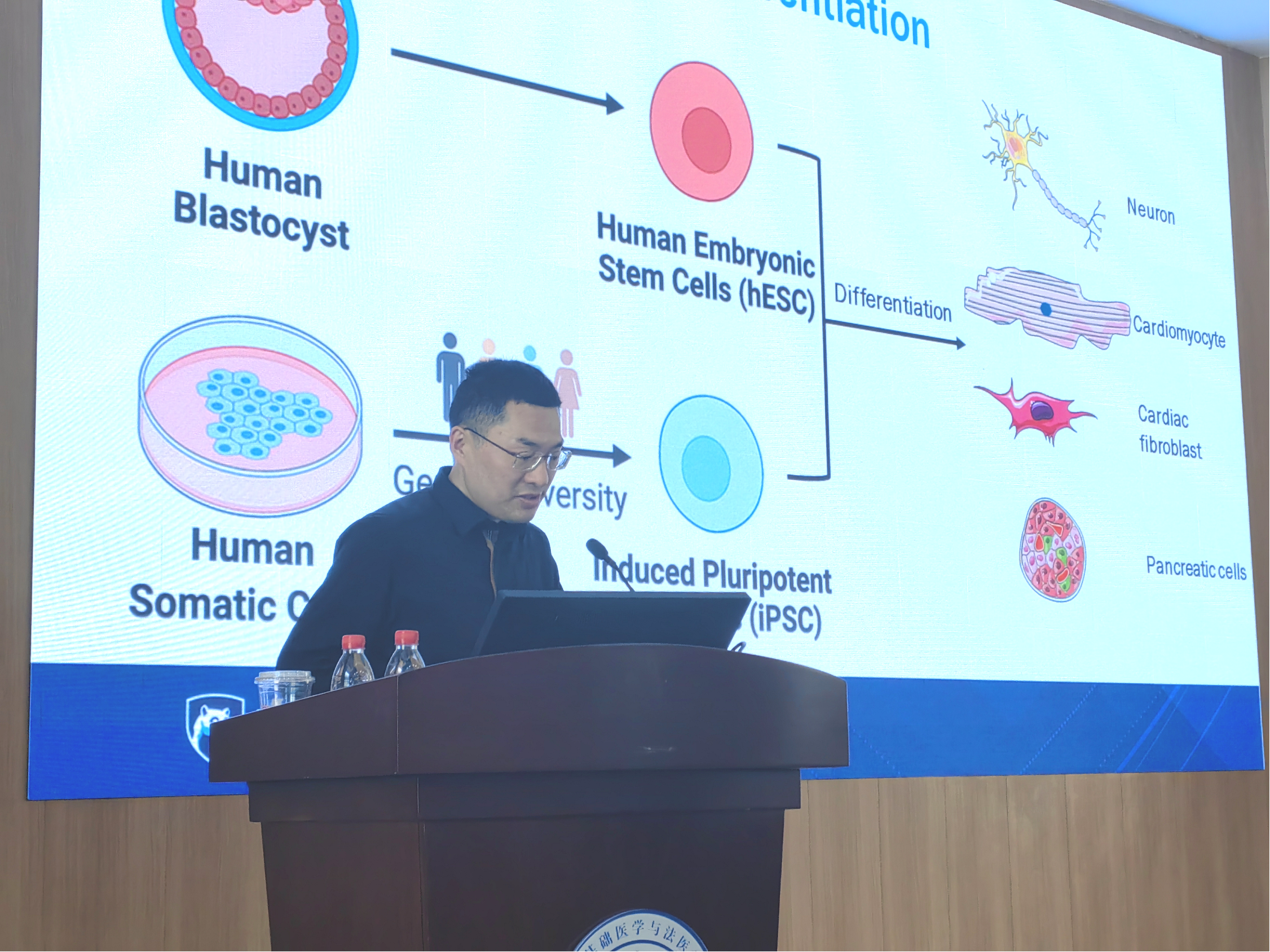 本次学术讲座,练小军副教授以“通过从特定来源患者体内获得的人类多能干细胞在制备治疗性体细胞方面具有重大运用前景”为主题,为实现这一目标的一种方法是在人类多能干细胞中创建系谱特异性报告基因定向干细胞的分化。然而,低效的基因敲入效率和靶向细胞分离困难为这一技术的临床运用造成了重大挑战。为了解决这些问题,练小军教授课题组提出了MAGIK方法,通过两步过程提高基因敲入效率:首先使用iCas9 modRNA和小供体质粒,然后用dCas9激活因子modRNA暂时激活靶基因,从而促进活细胞筛选。该方法无需药物选择盒或劳动密集的单细胞克隆筛选,加速了精确的基因编辑。正向编程(Forward programming)是另一种有效策略,可能更高效地生成所需的细胞群体,借助单细胞RNA测序(scRNA-seq),从人类多能干细胞衍生的内皮祖细胞(EPs)中鉴定出上调的SOXF因子SOX7、SOX17和SOX18。值得注意的是,单独过表达SOX17产生了CD34+VEC+CD31−细胞,并且结合FGF2,产生了超过90%的CD34+VEC+CD31+内皮祖细胞。这些细胞进一步分化为功能性内皮细胞,突显了SOX17在将人类多能干细胞编程为内皮系中的新发现角色。报告人借助基因组编辑和前向编程对于将人类多能干细胞稳健分化为治疗性细胞进行了深入探讨。