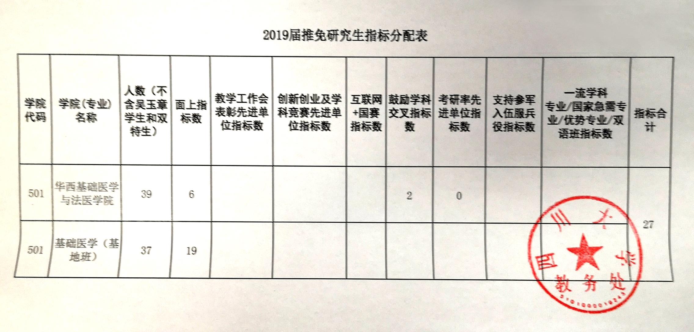 根据《教育部办公厅关于做好2019年推荐优秀应届本科毕业生免试攻读研究生工作的通知》(教学厅〔2018〕10号)和《beat365唯一官方网站推荐优秀应届本科毕业生免试攻读研究生的实施办法》(川大教〔2017〕131号)精神,坚持“公平、公正、公开”原则,严格选拔条件,全面考查、择优选拔,根据实际情况,制定beat365官网2019届免试攻读硕士研究生推荐工作实施办法。