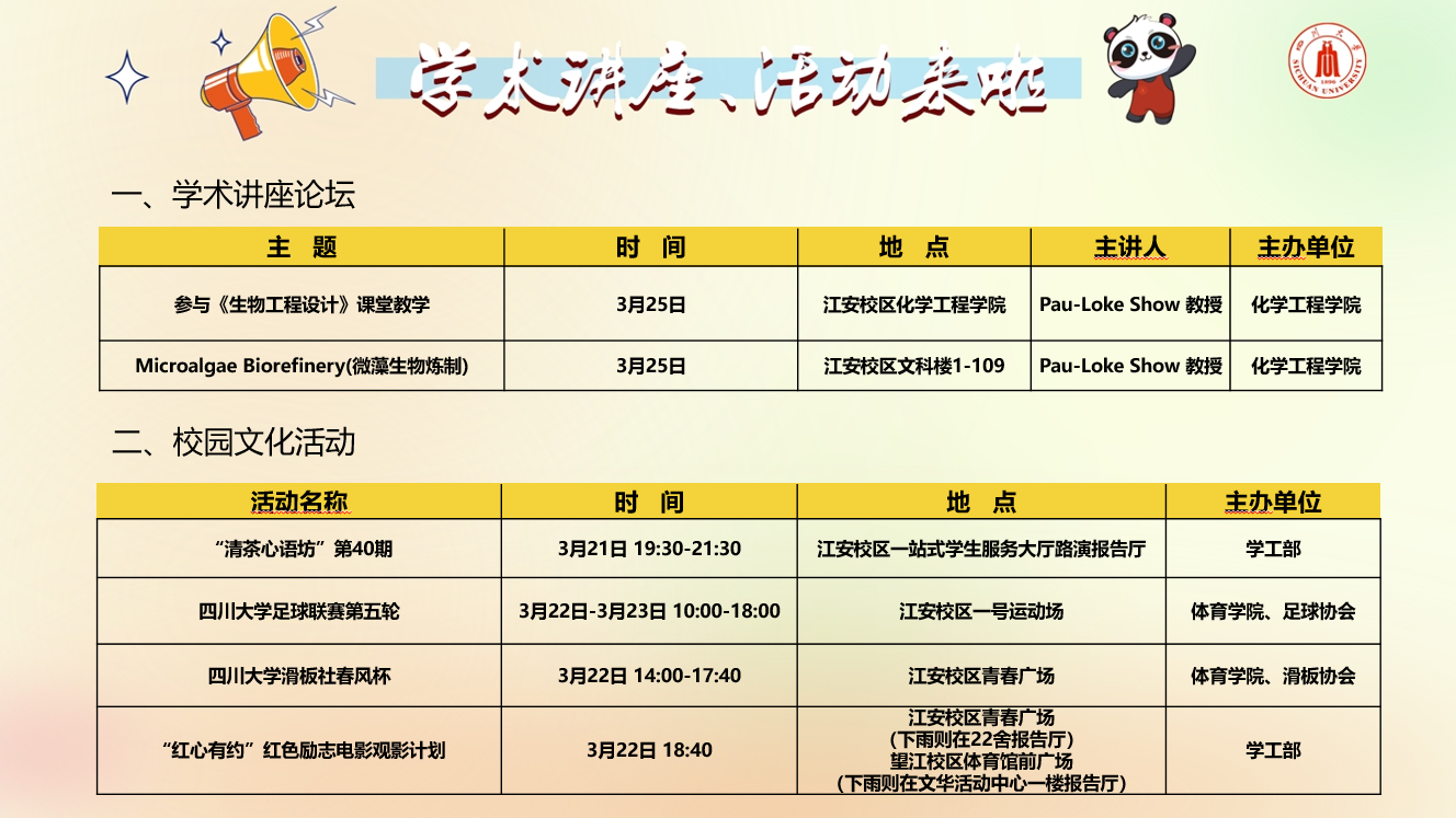 校内学术讲座论坛及校园文化活动预告(一)