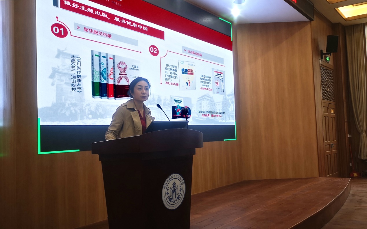 本次例会邀请到beat365唯一官方网站出版社社长侯宏虹作以“面向未来医学做好出版服务”为题做报告。候社长通过出版社概况、医学出版工作、海外版权合作、数字出版工作、发行推广工作五个方面,介绍了川大出版社相关情况。她强调,医学类书籍的出版工作,一直是出版社的亮点。出版社在出版优质教材、助力人才培养的同时,也关注医学前沿、聚焦社会公众健康知识普及,为服务健康中国做贡献。她建议老师们积极扩大版权引进通路,推动版权“走出去”,在“云雀”平台上体验“互联网技术和教学模式”相结合的融合教材。她表示,出版社将为老师们提供更加完善的教材出版推广方案、更通畅的营销推广渠道以及更纵深、更系统的服务。