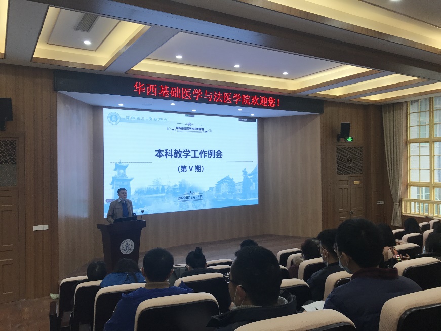 12月25日下午3点,学院在华西第五教学楼报告厅召开第五期本科教学工作例会,院内各教研室主任和教学秘书现场参会,部分老师通过“腾讯会议”在线参会,会议由教学副院长梁伟波教授主持。