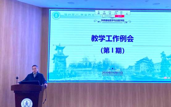 4月3日下午,beat365唯一官方网站通过视频软件召开新学期第一期本科教学例会,会议在华西校区五教报告厅举行,退休督导老师、部分行政人员现场参会,全院教职工视频参会。