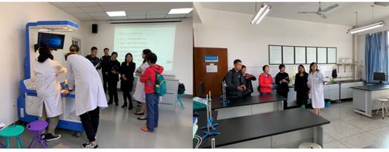 赵艳芝副院长一行首先在王玉芳主任的带领下参观了机能学实验室,在听取了各个实验室的器材、装备、应用等详细介绍后,在信息化集成化机能实验室进行了教学观摩。赵院长一行尤其对人体机能实验室、虚拟仿真实验平台等表现出浓厚的兴趣。