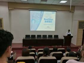 来自Doctor Can团队的蔡武峰有非常丰富的参赛经验,他分享的主题是“以大海为背景,以天地为舞台”,生动地讲述了他参加第四届互联网+大赛的整个过程,以及在厦门大学参加决赛时激动人心的盛况,鼓励同学们一定要以提升自我为目标,抓紧时间投入项目准备,与团队成员沟通协作,不轻易放弃,并预祝大家能走得更远。