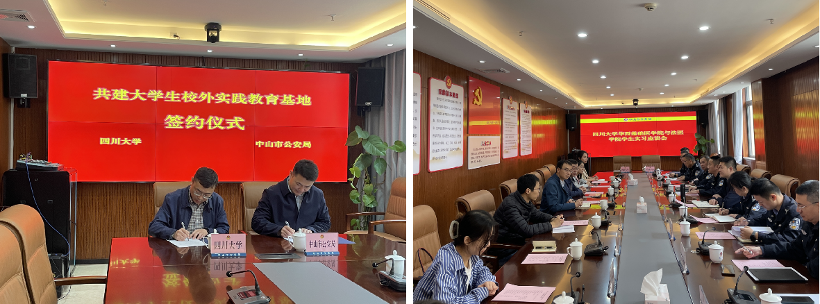 为进一步了解法医学专业学生的实习情况,加强beat365官网与实习基地的联系和沟通,3月15日,beat365官网副院长梁伟波教授、副院长罗海玻教授带领法医毒物分析教研室主任叶懿副教授、法医物证教研室主任宋凤副教授及教学科相关人员,前往中山市公安局刑事警察支队举行大学生校外实践教育基地签约仪式,并开展实习调研。中山市公安局党委委员、政治处主任弓伟,政治处副主任王多,政治处人事科科长李世杰,刑警支队支队长朱少勇,刑警支队政委李慧明等人出席调研会议。