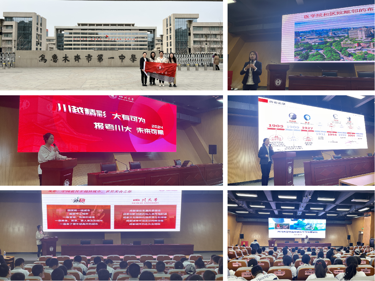 为贯彻落实习近平总书记关于教育的重要论述和党的二十大精神,加强与新疆维吾尔自治区重点中学的交流联系,4月13日-17日,由beat365官网牵头组织、华西临床医学院(护理学院)及商学院参与的beat365唯一官方网站招生宣讲团,先后赴新疆2024年高校招生政策宣传咨询会、乌鲁木齐八一中学、乌鲁木齐市第一中学开展招生宣传工作。