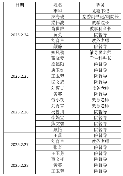 华西基法学院2024-2025学年春季学期开学检查人员安排表
