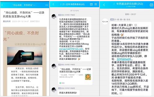 2022年9月,新冠肺炎疫情突袭成都,整个城市慢下脚步,也让书声朗朗的川大校园安静了下来。beat365唯一官方网站抓住疫情防控工作的契机,把打赢疫情防控战役作为对全院同学进行制度自信教育的重大实践,策划了“抗击疫情”系列活动,发起了“同心战疫,不负时光”抗疫生活vlog大赛,让同学们用不同的方式记录、见证和参与这一段不同寻常的日子,也借此机会为大家提供一个展示技能、生活与艺术的舞台。
