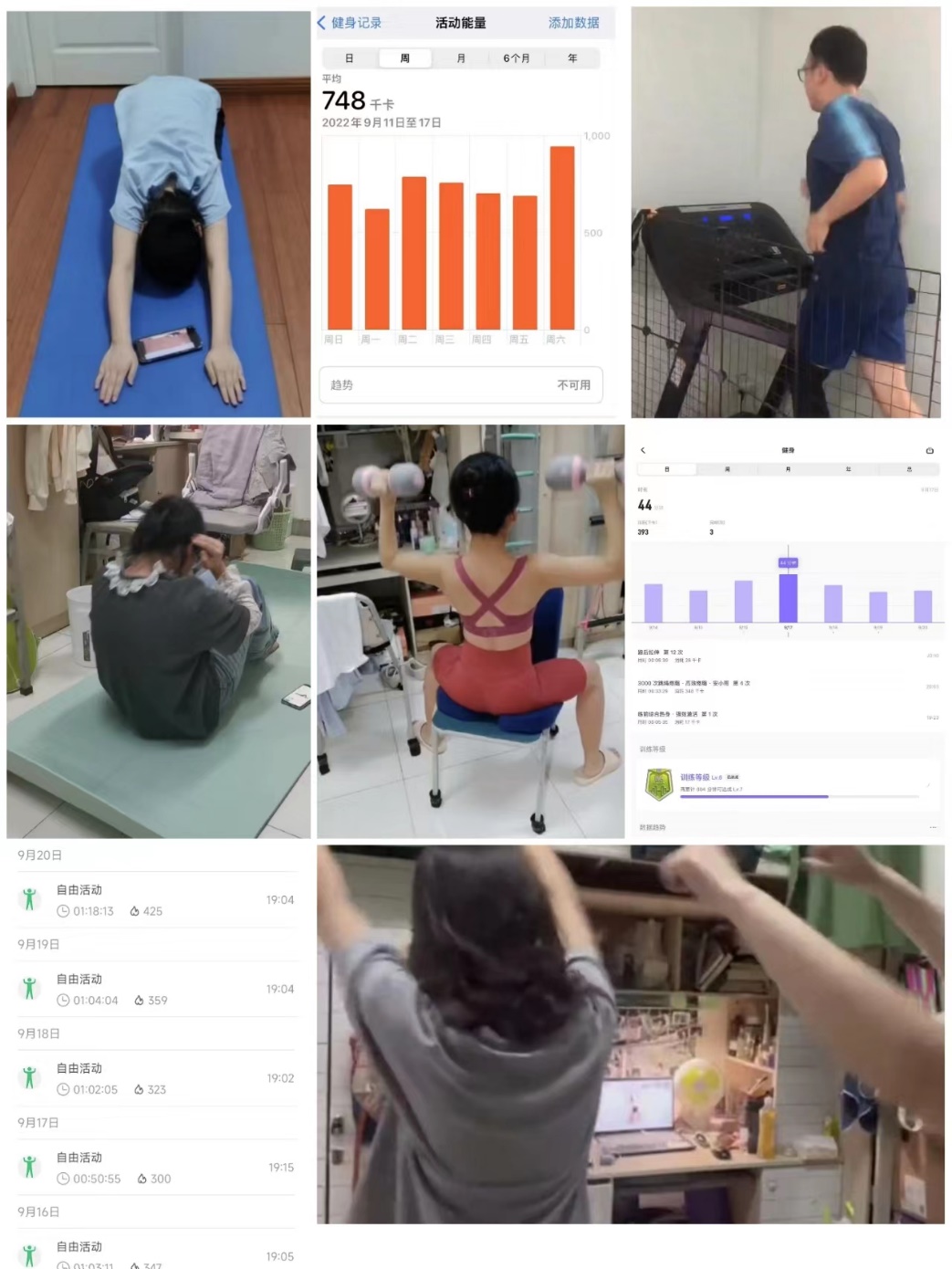 在为期7天的活动中,参与活动的同学们“各显神通”,每天都完成不同的运动项目,不仅严格按照防疫要求居家隔离,还坚持运动打卡,积极响应“抗疫居家,健康在我”的活动口号。本次活动吸引了不同专业、不同年级、不同学历阶段的同学参与,通过规律健康的运动焕发出青春的活力,为抗疫生活增添了光彩。活动中大家采用健身操、瑜伽、哑铃、跑步机锻炼等多种室内运动形式提升自己的身体素质,每次运动结束后精心记录或剪辑的照片、视频则展现了坚持抗疫、健康生活的乐观心态,也将那一份从容传递给每一位积极抗疫的同伴。