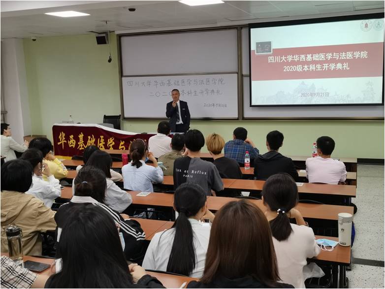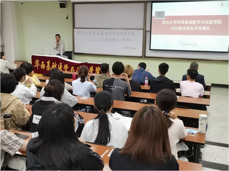 9月21日下午,beat365官网2020级本科生开学典礼在江安校区第一教学楼B座301教室举行。学院党委李昌龙书记、郭晓伟副书记、梁伟波副院长、教导员孔古娅老师、江安校区辅导员老师以及100名2020级本科生参加了开学典礼。开学典礼由郭晓伟副书记主持。