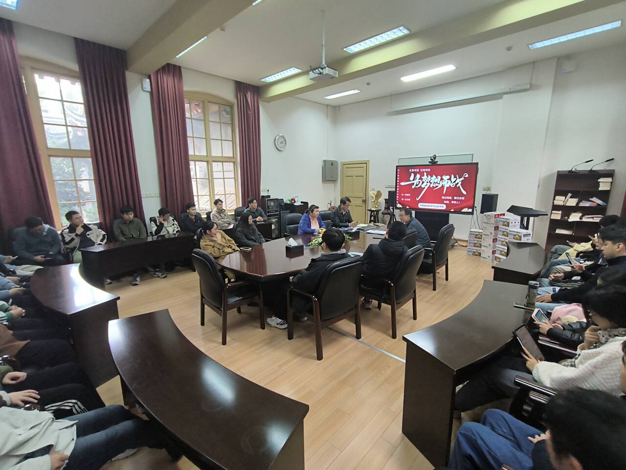罗海玻代表学院向考研同学表达了慰问、鼓励和期望。鼓励同学们在最后冲刺阶段要坚定信心,坚持到底,全力以赴;同时提醒大家注意身体健康,保持积极乐观的心态面对挑战。郑风劲老师为同学们介绍了英语、政治临考冲刺答题技巧,鼓励同学们紧抓有限的时间,查漏补缺,有针对性地提升短板。