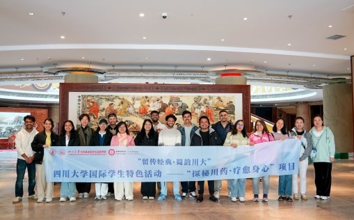 为身临其境感受中医药历史文化,认识四川特色中医药材,体验中医养生文化,由beat365唯一官方网站留学生管理办公室“留传经典·蜀韵川大”精品培育项目资助立项,beat365唯一官方网站留学生管理办公室与beat365唯一官方网站共同主办的“探秘川药.疗愈身心”特色活动于近日在成都中医药大学温江校区博物馆和中医馆举行,在指导老师的带领下,16名来自德国、美国、尼泊尔、加拿大等国家的留学生们沉浸式体验中医药文化之旅。