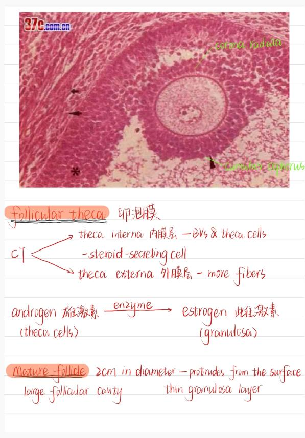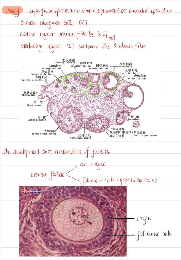 全英文组织学与胚胎学(I)笔记中不仅准确记录了各类组织的显微结构特征,更用英文精准描述了关于女性生殖系统的知识点。王羽佳同学分享道:“全英文课程务必重视预习,提前掌握关键术语,以便跟上课堂节奏。预习时标记难点,课上针对性听讲。组胚作为形态学科,笔记应结合图示,强化对细胞与结构的直观认识。坚持阅读英文教材、记录英文笔记虽有挑战,却是接触前沿研究、提升学术交流能力的重要训练。”