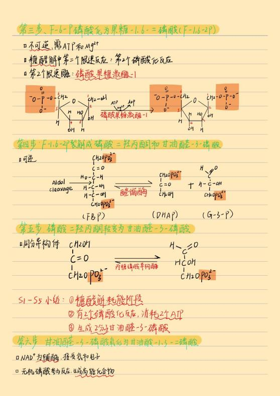 生物化学(II)笔记有着独特的风格——逻辑清晰的代谢通路图、层层递进的反应机制解析。笔记中将糖代谢复杂过程可视化,展现了其将抽象概念转化为具体认知的能力。伍勇平同学分享说:“生物化学是理解生命现象和疾病机制的基础,在做笔记时要抓住核心概念与反应机制,可以用图示简化代谢通路,同时标注易错点,并按时复习。”