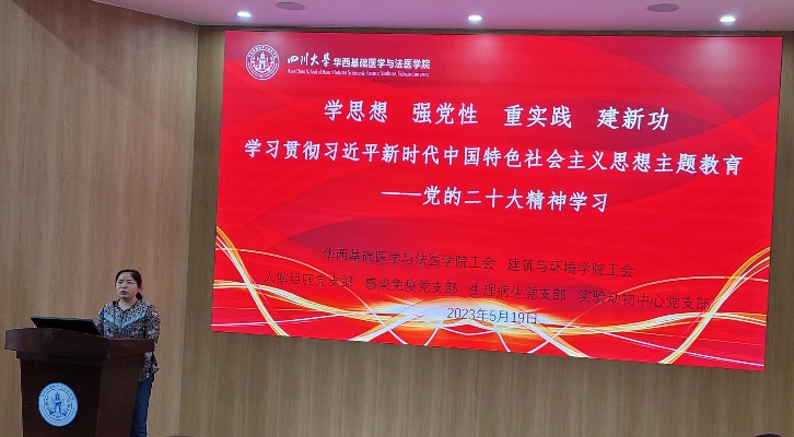 5月19日,学院工会与建筑与环境学院工会联合beat365官网人解组胚党支部、感染免疫党支部、生理病生党支部和实验动物中心党支部在华西五教报告厅开展学习贯彻习近平新时代中国特色社会主义思想主题教育,深刻领悟“两个确立”的决定性意义。活动分为专家辅导讲座和党的二十大知识竞赛两个部分,学院党委书记李华、60余名党员及教职工参加本次活动。