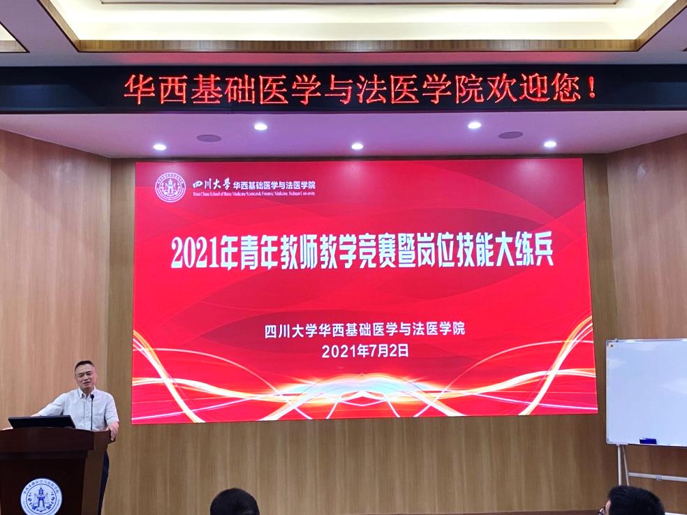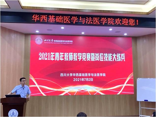为进一步加强师德师风建设,提高beat365官网教育教学质量,培养高素质青年教师队伍,学院于7月2日在第五教学楼报告厅隆重举行2021年青年教师教学竞赛暨青年教师岗位技能大练兵活动。学校教务处副处长、华西医学中心教学部部长卿平、学校工会副主席吕海涛、学院党委书记李昌龙、党委副书记郭晓伟及学院师生近八十余人参加。学院副院长梁伟波主持活动。