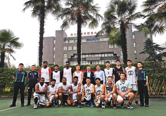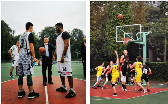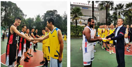 10月13日,由学院工会、分团委和研究生会联合举办的首届学院师生男子篮球联谊赛在华西校区篮球场圆满落幕。学院教职工队、本科生队、留学生队和研究生队四支队伍参加了此次比赛,党委书记李昌龙、院长黄灿华、副书记郭晓伟亲临现场观看且指导。