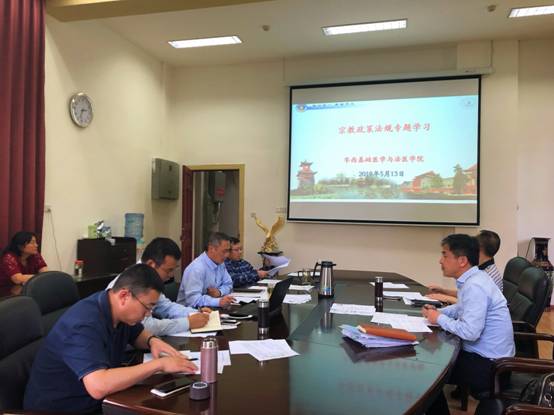 5月13日下午,beat365官网在华西第五教学楼会议室召开党委中心组学习会,专题学习宗教政策法规和习近平总书记在纪念五四运动100周年大会上的重要讲话。学院全体班子成员参加会议,会议由学院党委书记李昌龙教授主持。