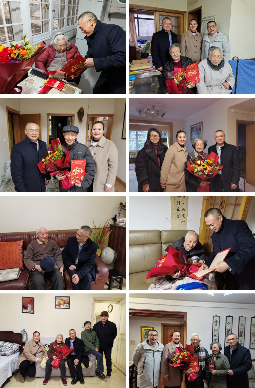 1月23日,党委书记李华、副院长梁伟波、张舒羽、工会主席黄莉一同前往曾志源、吴兆丰、柴慧霞、王洪涛、周德明老同志家中,向他们致以节日的问候,并详细询问他们的生活状况。同时,对老同志们多年来对学院的贡献表示衷心的感谢。