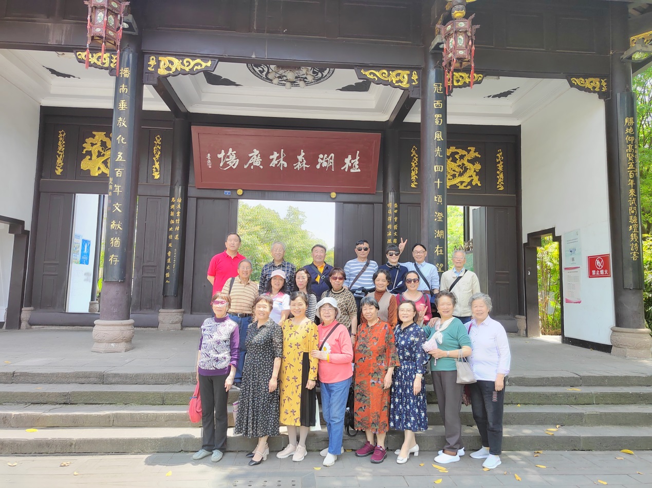 参观天府家风馆结束后,老同志们游览了新都桂湖公园。大家在公园中一边漫步欣赏花海美景,一边亲切交谈,问问近况,聊聊家常,其乐融融。老同志们并纷纷表示要倍加珍惜现在的幸福生活,发挥老同志的优势,为学院、学校的发展奉献自己的力量。